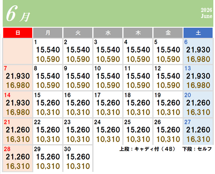 | ビジター | 平 日 | ーー | ーー円 |